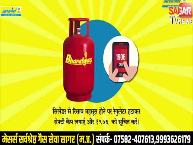भारतगैस मेसर्स सर्वश्रेष्ठ गैस सेवा सागर (म.प्र.) संपर्क- 07582-407613,9993626179 || SAGAR TV 24X7 |