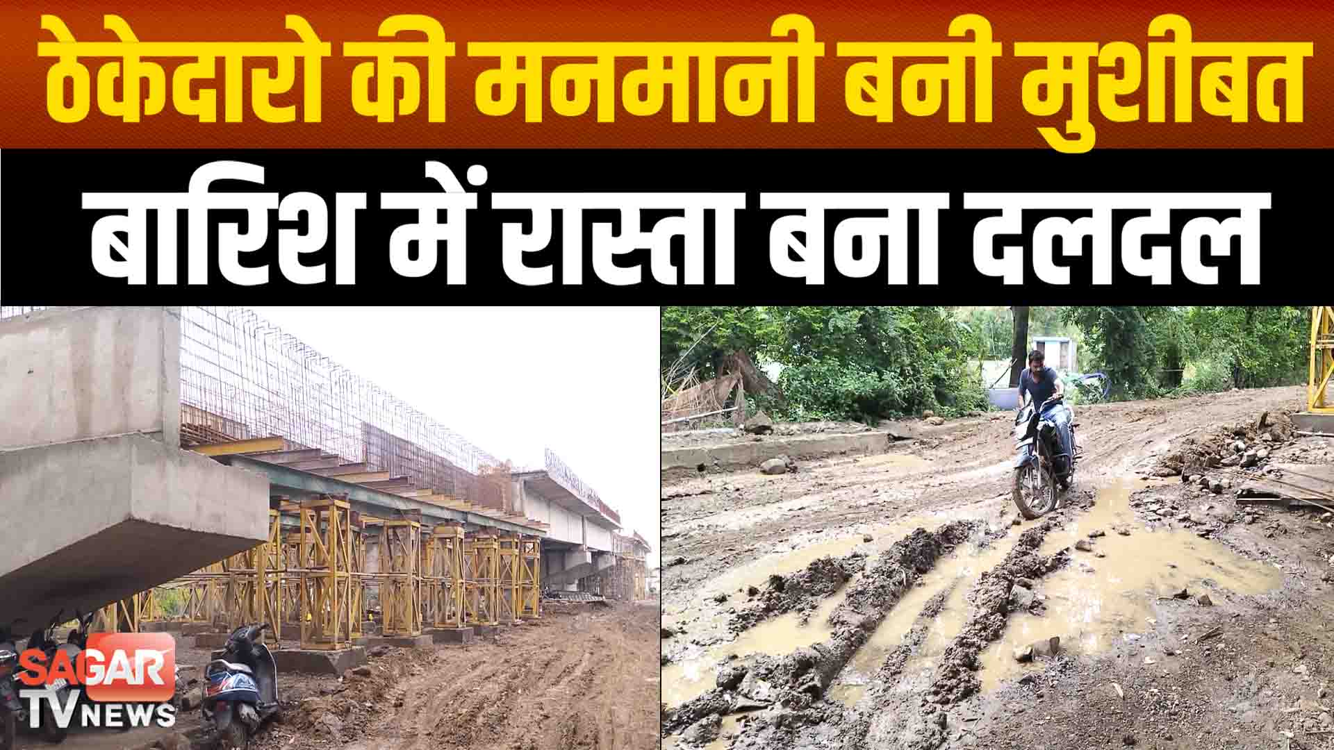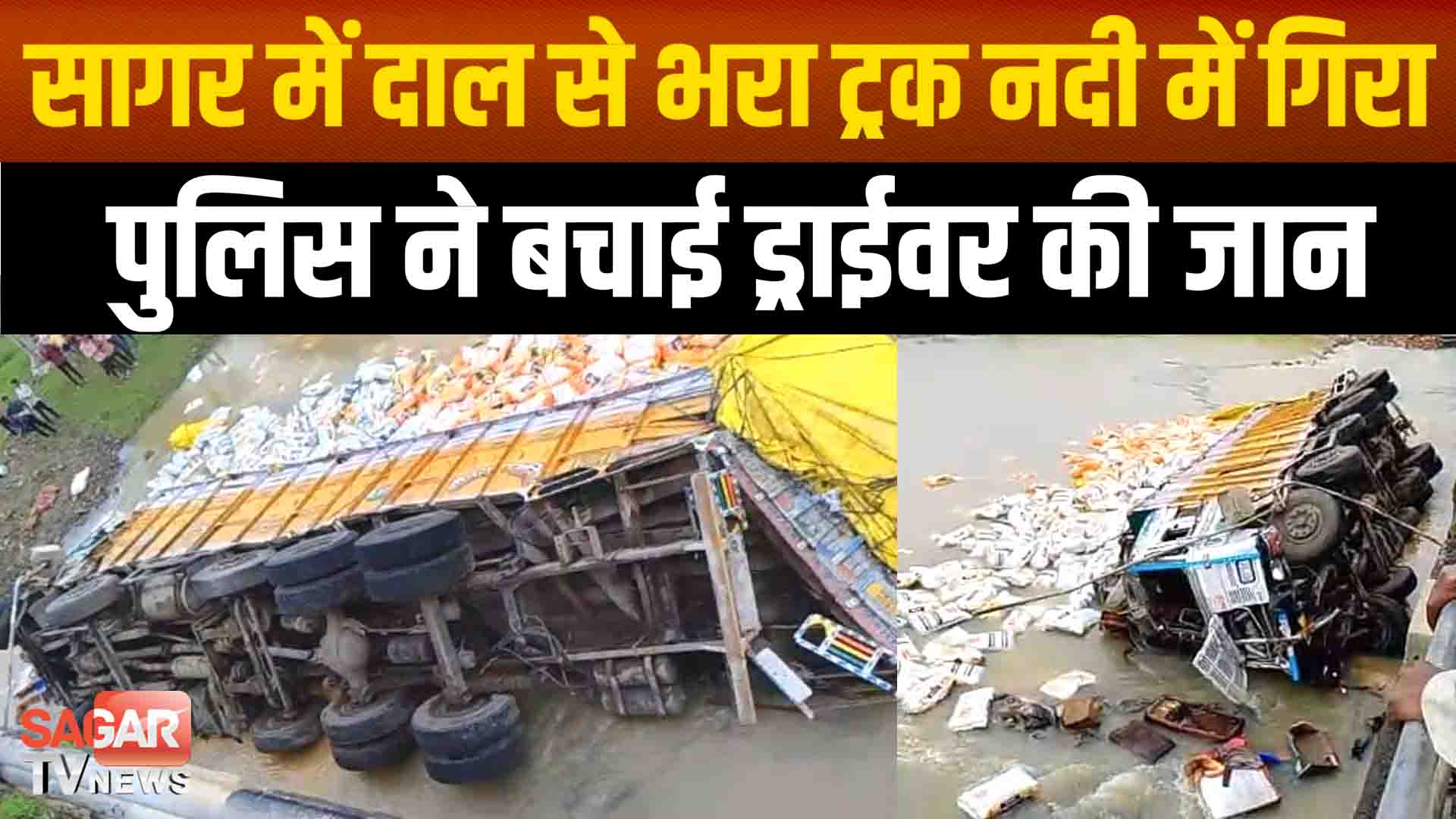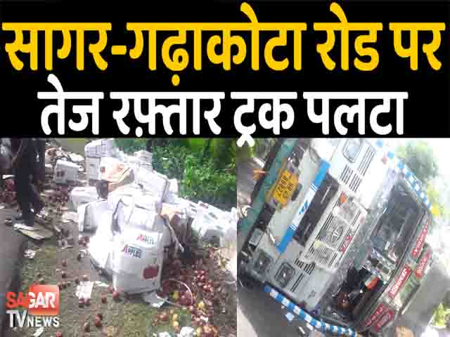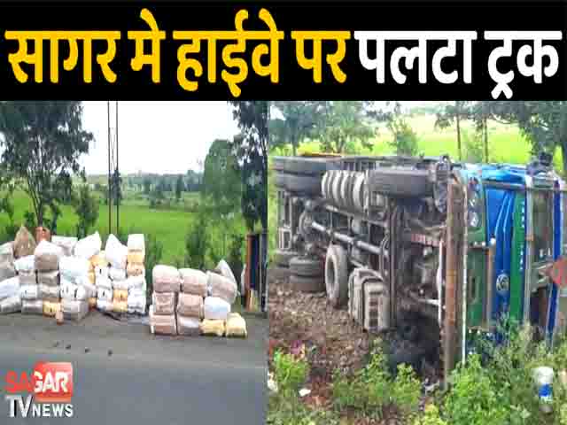 Sagar- स्कूटी बचाने के चक्कर में बेकाबू हुआ ट्रक ओवर ब्रिज पर बिखरा तेल