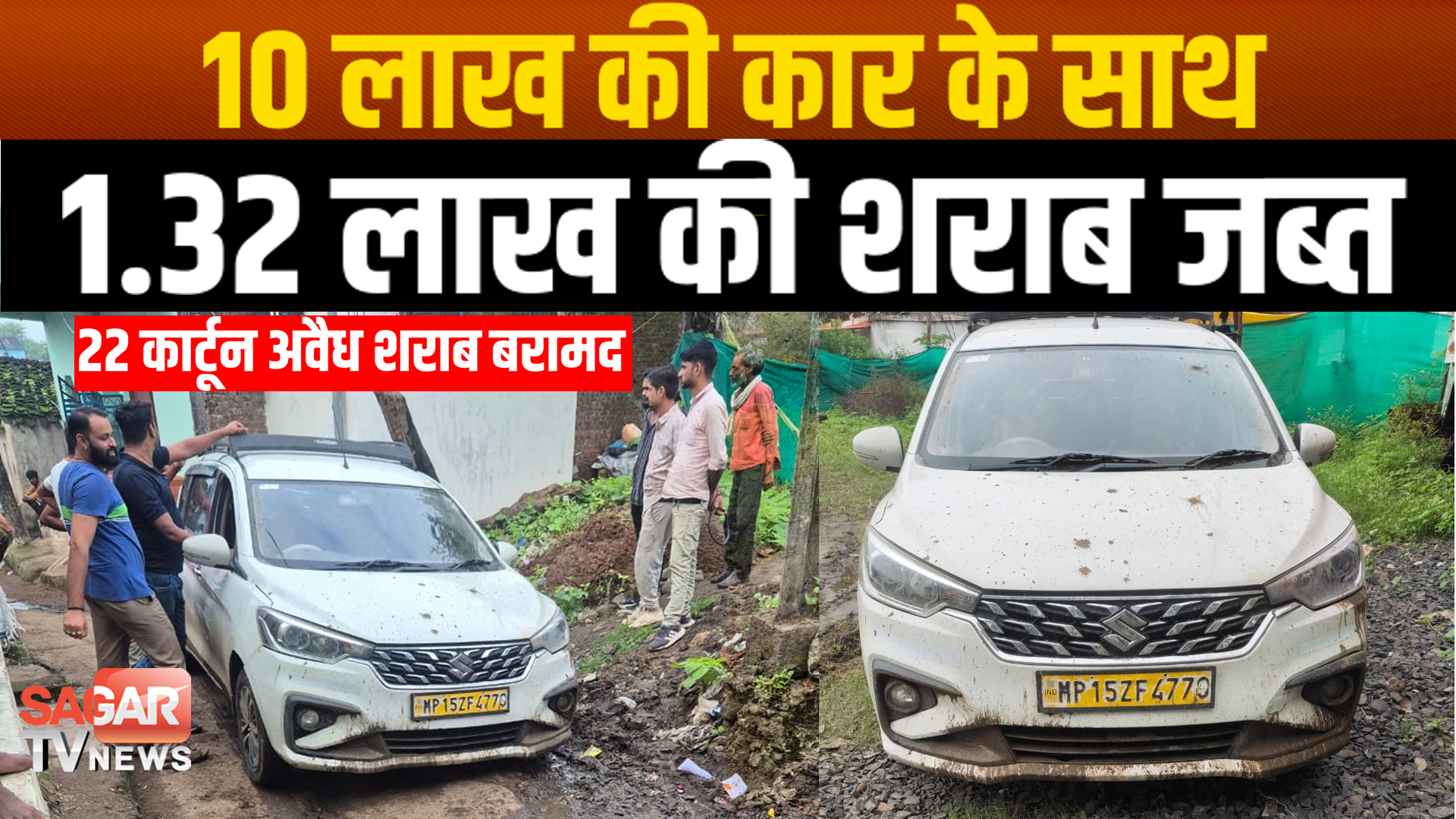 सागर- सानौधा पुलिस का छापा,अवैध शराब ₹4.19 लाख की जप्ती, तस्कर गिरफ़्तार, कार भी सीज़ |SAGAR TV NEWS