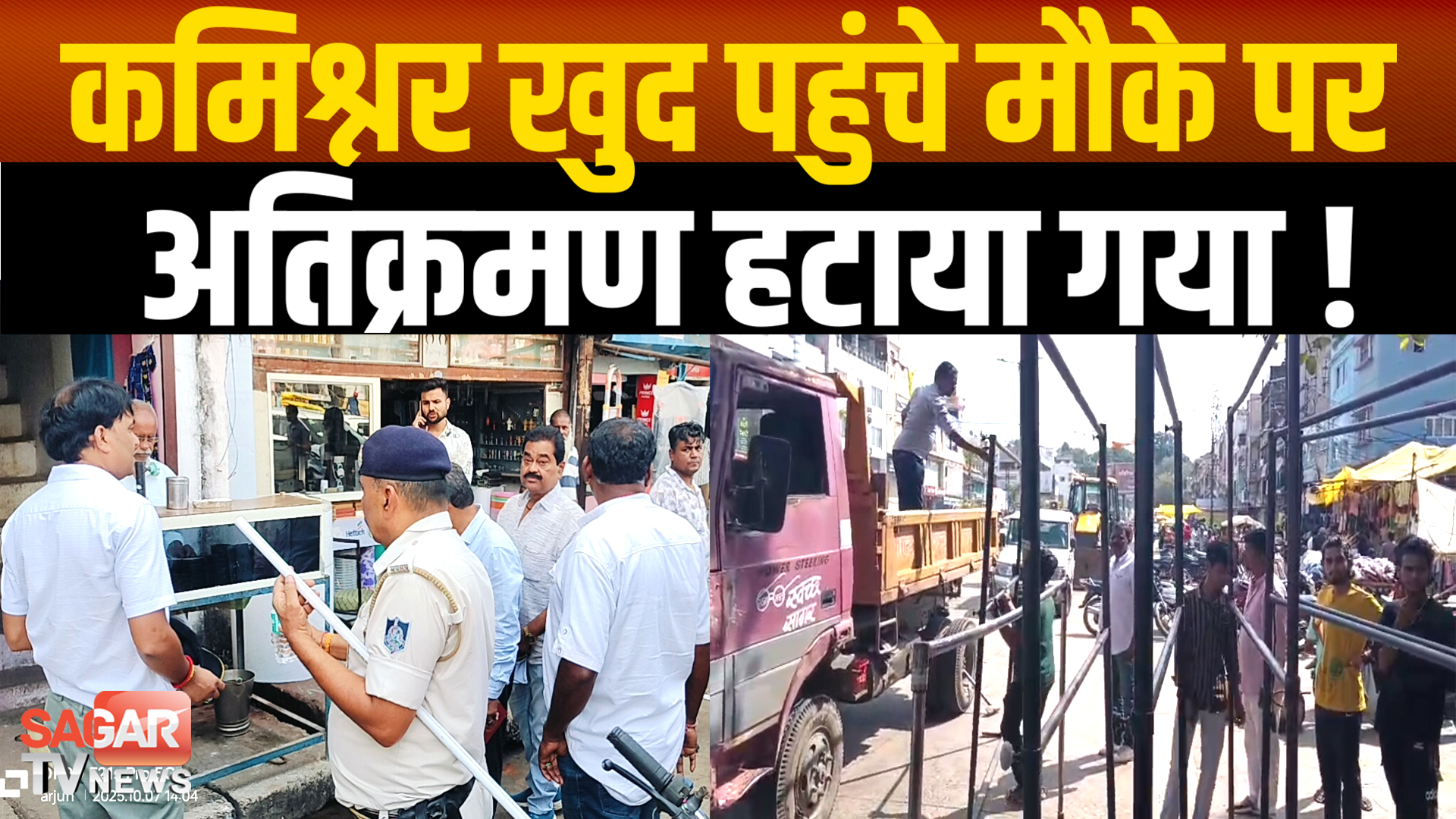 सागर- कमिश्नर की मौजूदगी में कटरा बाजार में अतिक्रमण पर चला निगम का डंडा |SAGAR TV NEWS|