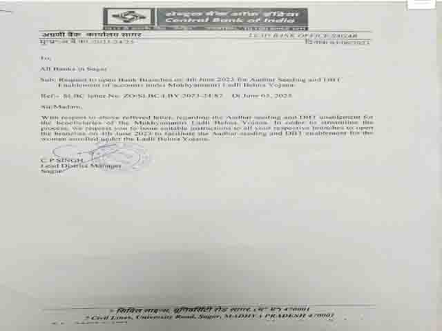 कलेक्टर श्री दीपक आर्य ने बताया कि मुख्यमंत्री श्री शिवराज सिंह चौहान की महत्वकांक्षी योजना लाडली बहना योजना के तहत 10 जून से पात्र बहनों की बैंक के खाते में 1000 रू. की राशि हस्तांतरित होगी जिसके परिप्रेक्ष्य में समस्त बहनों के बैंक खातों में डीबीटी एवं आधार लिंक होना आवश्यक है। इसी परिप्रेक्ष्य में जिला पंचायत के मुख्य कार्यपालन अधिकारी श्री पी.सी. शर्मा, अनुविभागीय अधिकारी श्री शैलेंद्र सिंह, श्री अशोक सेन, श्री मुकेश चौरसिया, श्री विजय डेहरिया, श्री गोविंद दुबे, जनपद पंचायत की मुख्य कार्यपालन अधिकारी श्रीमती प्रतिष्ठा जैन, मनीषा चतुर्वेदी, श्री संजय सिंह, तहसीलदार श्री राहुल गौंड, श्री दुर्गेश तिवारी, श्री प्रतीक रजक, सुश्री सोनम पांडे, श्री इसरार खान, श्री आदर्श जैन सहित अन्य राजस्व अधिकारी अपने-अपने अनुविभाग तहसील की बैंकों में पहुंचकर कार्य संपादित कराने में सहयोग कर रहे हैं।